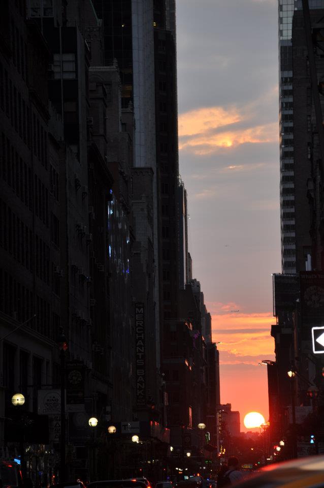 Le soir venu, à la force de nos mollets, nous avons rejoint Times Square, non sans admirer au passage le coucher de soleil entre les gratte-ciels de la 5e Avenue.